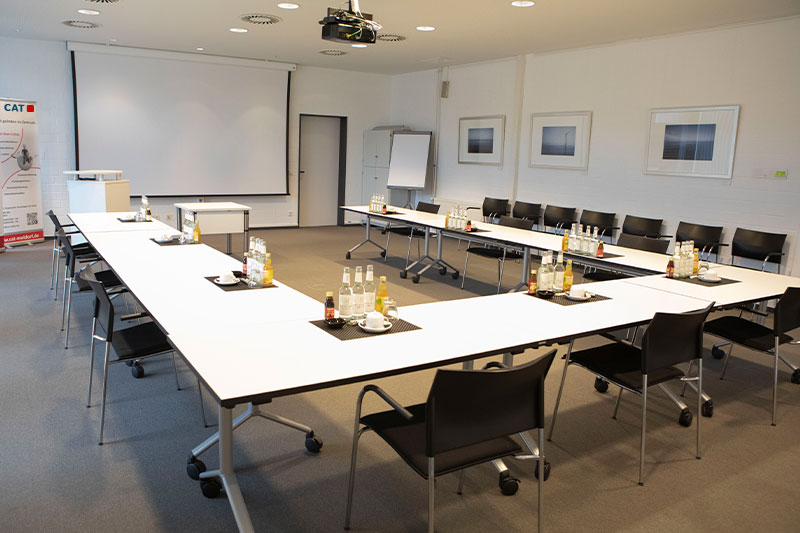 Da wir im CAT auch Konferenzräume vermieten, die mit modernster Konferenztechnik ausgestattet sind, steht selbst einem repräsentativen Team- oder Geschäftsmeeting nichts im Wege.